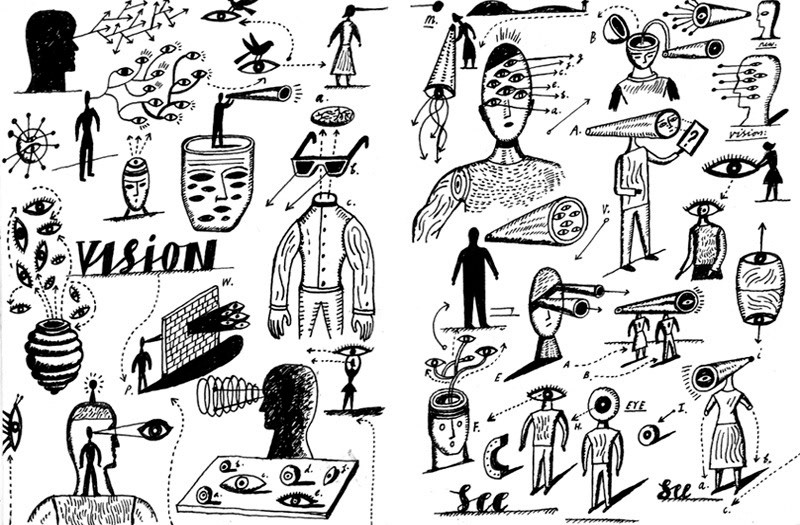 New drawings from drawn ideas. Drawings based around the theme of Vision.
